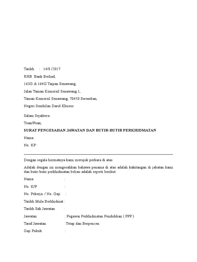 Contoh Surat Pengesahan Jawatan Pdf