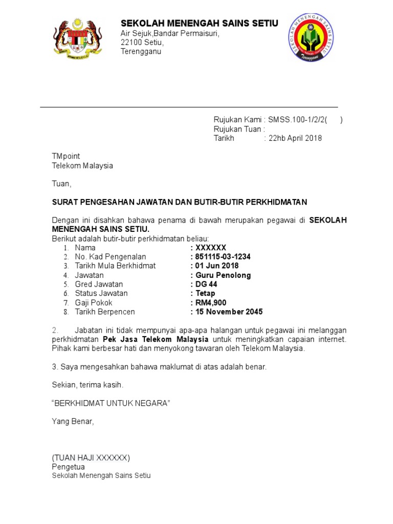 Gambar Contoh Surat Pengesahan Jawatan Tetap Terbaik 2019. The collection that comprising. Ini adalah bukti yang kukuh.